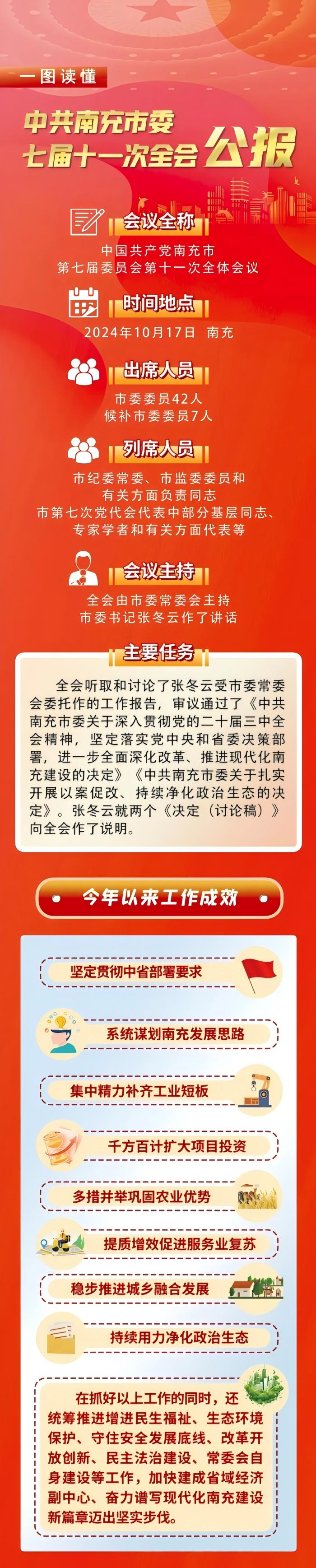 10月17日,中国共产党南充市第七届委员会第十一次全体会议召开。