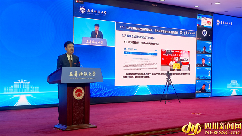 西华师范大学党委副书记、校长陈涛以《坚持立德树人、强化内涵建设,高质量培养创新型、应用型、复合型人才》为题作学校本科教育教学补充报告。他围绕“党的教育方针全面贯彻,立德树人成效显著”“人才培养模式持续优化,育人示范引领作用不断提升”“教学质量保障体系持续优化,评建促强能力进一步提升”等方面介绍了学校人才培养成效。