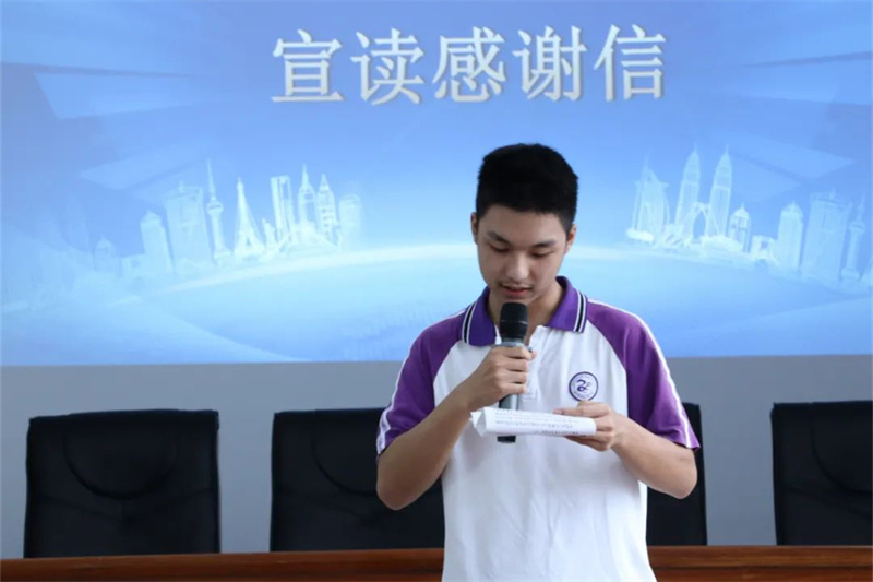 竞赛获奖代表赵宇豪、刘根佚发言,对陈铭仕的慷慨捐助和精神鼓励表示衷心感谢,将珍惜取得的成绩,戒骄戒躁,努力学习,早日成长为祖国的栋梁之材,为实现中华民族伟大复兴作出自己的贡献。