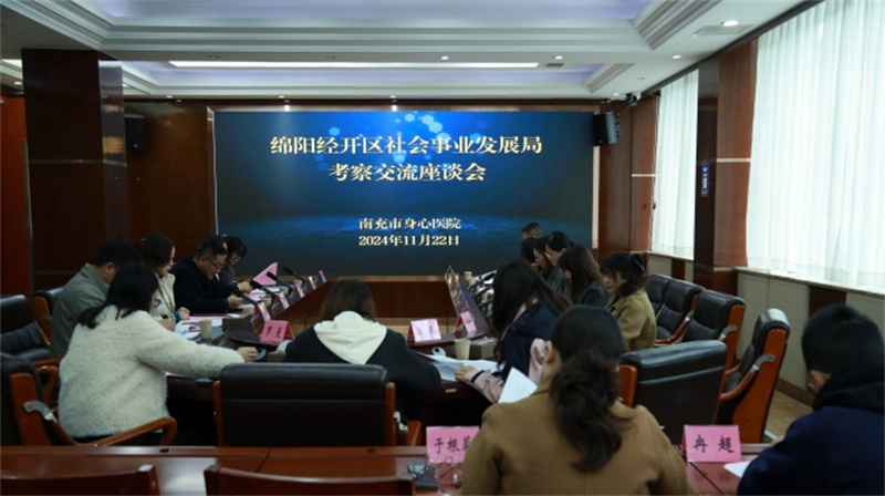 11月22日,绵阳经济技术开发区社会事业发展局考察团一行13人到南充市身心医院考察,双方就未成年人心理健康服务的“正心”健康工程实施经验进行了深入交流。