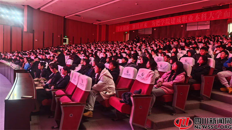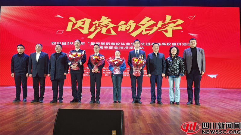 12月16日下午,“闪亮的名字”四川省2024年“最美基层高校毕业生”先进事迹巡讲报告团的四位优秀代表宁显海、郑俊良、王强、冯炼来到了南充职业技术学院,他们从不同角度、不同侧面回顾了多年奋斗基层、扎根一线的先进事迹,为师生们开启了一场精彩纷呈、启迪灵魂的精神洗礼。
