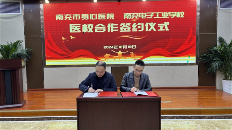 12月19日,南充市身心医院与南充电子工业学校顺利签订医校合作协议,双方将携手共建心理健康教育体系,不断提升学生心理健康服务水平,奋力推动学生心理健康事业发展。