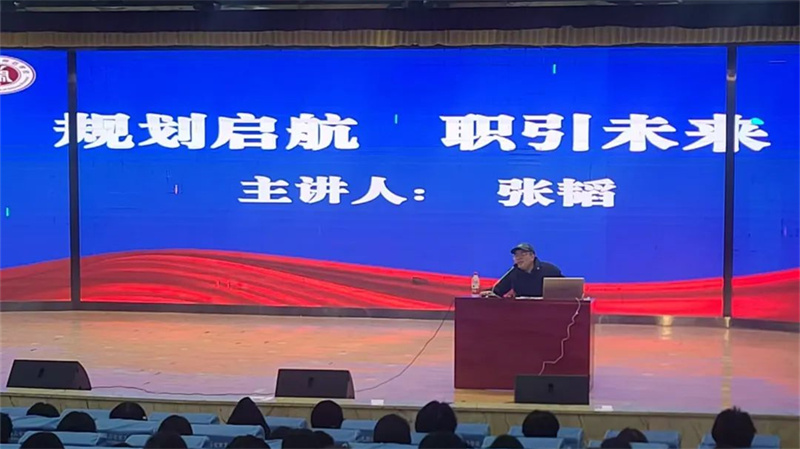 讲座伊始,张韬就当前就业政策和就业形势进行深入分析,他通过职业榜样邢小颖和郑红旭的事例,告诉同学们:无论选择什么赛道,只要找准方向、持之以恒,就一定能收获属于自己的精彩人生。