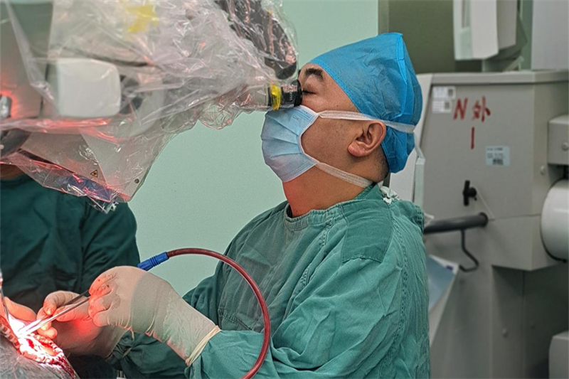 “患者颅内高压明显,而且随时有再出血的危险,必须立即手术!”神经外科唐晓平教授迅速启动绿色通道。麻醉、开颅、清除血肿、解剖分离血管、夹闭动脉瘤……由唐晓平教授主刀、赵龙副教授等人组成的手术团队,在显微镜下精准操作,经过4小时奋战最终顺利完成手术。