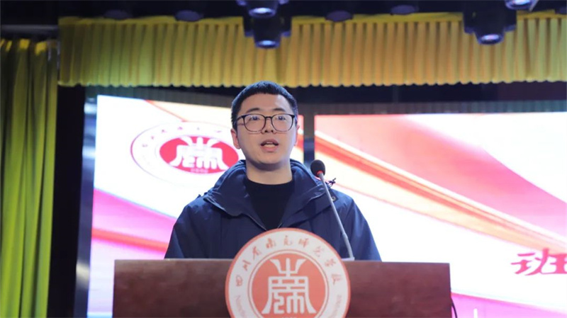 “希望全体毕业生,在未来的道路上,坚持终身学习,拥抱无限可能;勇于迎接挑战,塑造坚韧自我;常怀感恩之心,长修友善之德,怀揣着梦想与希望,勇敢地奔赴自己的前程。”班主任代表蒲霄汉在典礼上发表感言。
