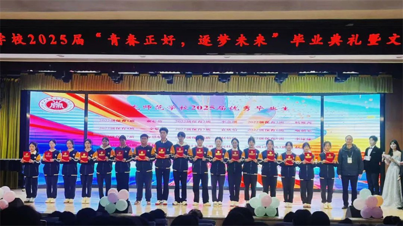 毕业典礼上,学校为2025届优秀毕业生颁奖,寄望他们能够手执青春之笔,书写时代答卷。随后,音乐声响起,南充师范学校2025届毕业晚会正式拉开帷幕。