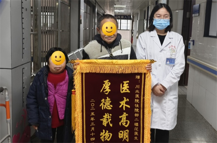“谢谢你们让我重新站起来!”近日,60岁的蒋女士在家人陪同下,亲手将一面绣着“医术高明、厚德载物”的锦旗送到南充市身心医院康复医学科。这面锦旗不仅是对医护团队的高度赞誉,更有力地印证了“疼痛可治、功能可复”的医学信念。